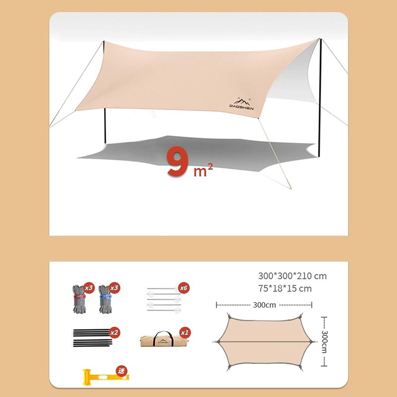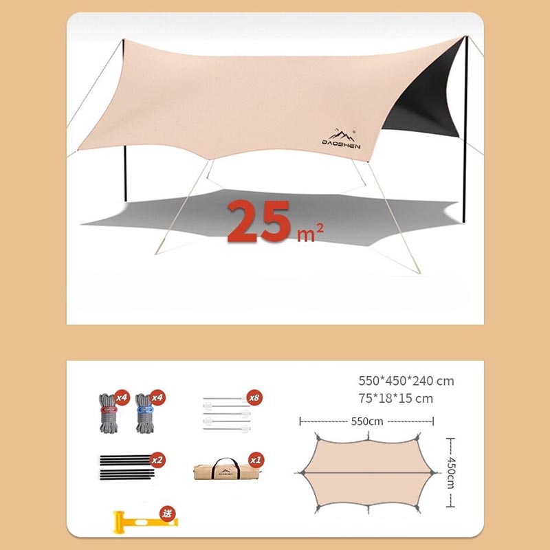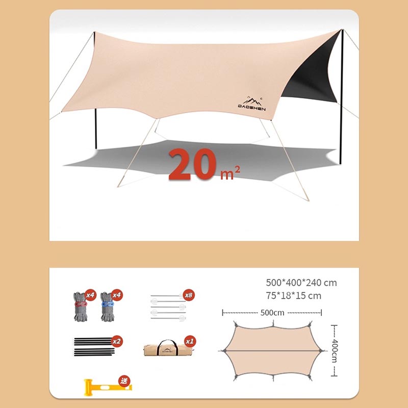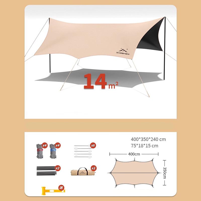 Comprend un revêtement en vinyle noir pour la protection solaire et un tissu Oxford haute densité 210D pour la résistance à la déchirure et à l'usure. Un cadre en acier plus haut et plus épais assure stabilité et résistance au vent. La conception de la canopée en forme de papillon offre un grand pare-soleil, ce qui la rend adaptée aux pique-niques en famille, à la détente sur la plage et à d'autres scénarios.