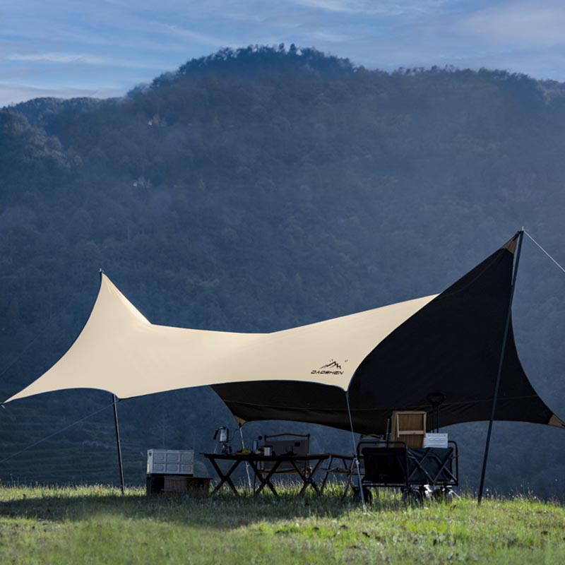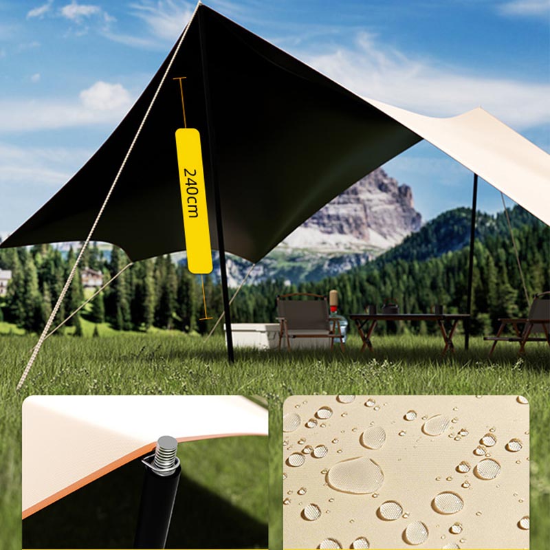 • Tente de camping de pique-nique en vinyle noir, auvent imperméable et pare-soleil, auvent rideau papillon de pique-nique